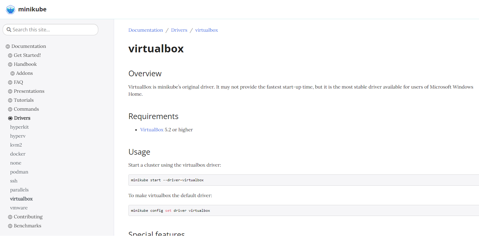 $ minikube start 🤷 Exiting due to PROVIDER_VIRTUALBOX_NOT_FOUND: The 'virtualbox' provider was not found: unable to find VBoxManage in $PATH 💡 권장: Install VirtualBox 📘 문서: https://minikube.sigs.k8s.io/docs/reference/drivers/virtualbox/minikube에서도 가상화 환경이 필요하며 프로그램 시작시 여러 가상화 솔루션 중 선택해서 사용할 수 있다.