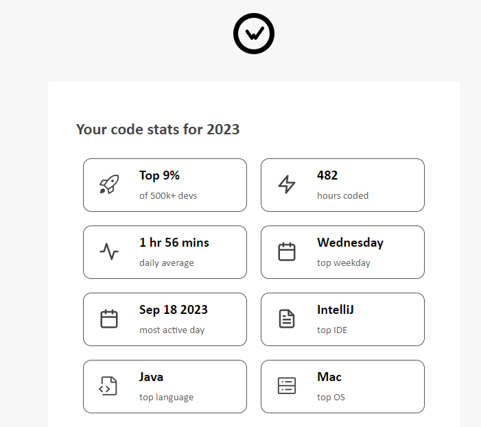 작년에 이어 올해도 WakaTime에서 일년간의 기록을 잘 정리해서 이메일로 보내주었다.